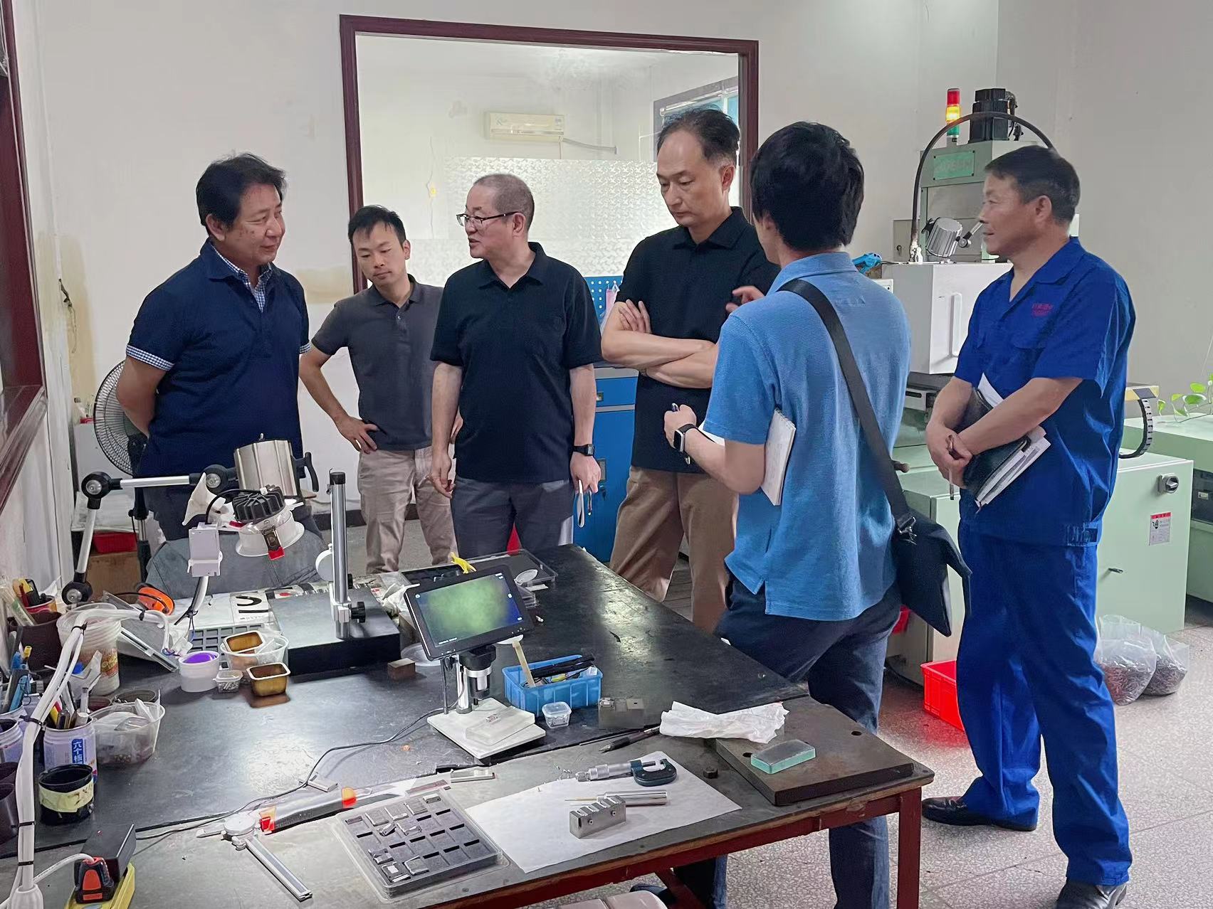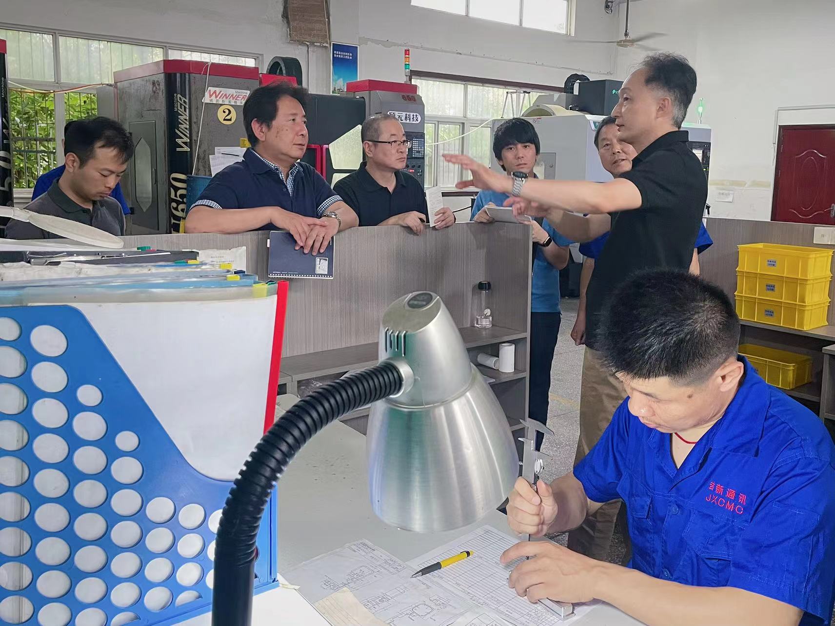 公司总经理王宪金及生产负责人柯庆传代表公司热情接待了远道而来的客人。在各部门负责人及工作人员的陪同下,客户参观了生产车间、装配车间、数控车间等。